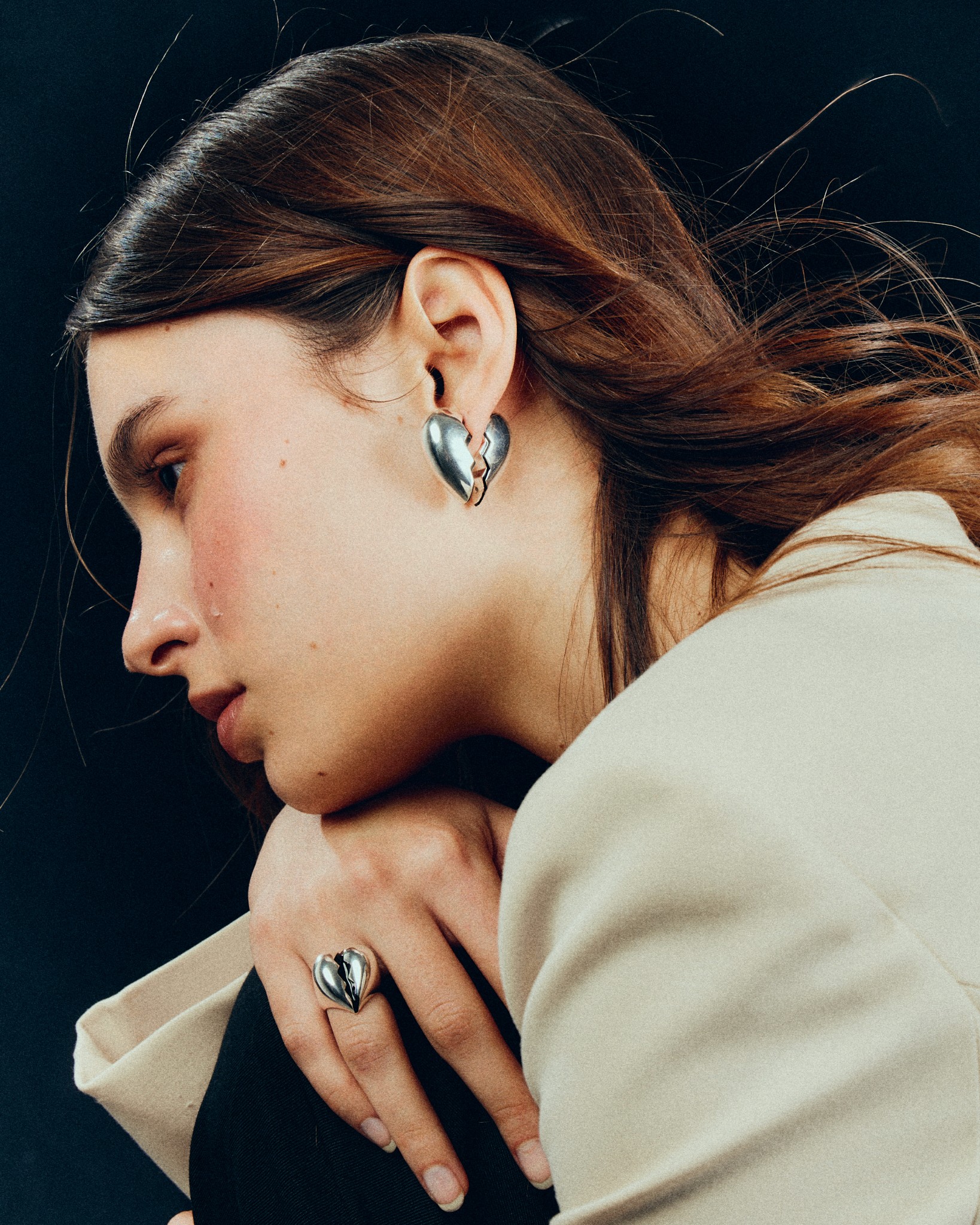 L’identità visiva di AIRHESS si fonda su una dialettica tra minimalismo e simbolismo. Le linee pure e le forme essenziali diventano veicoli di narrazioni profonde: anelli, orecchini e pendenti che sembrano piccoli talismani, capaci di custodire storie invisibili. Le campagne fotografiche, curate in ogni dettaglio, valorizzano la connessione tra oggetto e persona: ambientazioni neutre, luce naturale, materiali grezzi e palette sobrie creano un’estetica meditativa e raffinata. Ogni immagine mira a evocare sensazioni più che a mostrare il prodotto, favorendo un’esperienza percettiva quasi sensoriale.