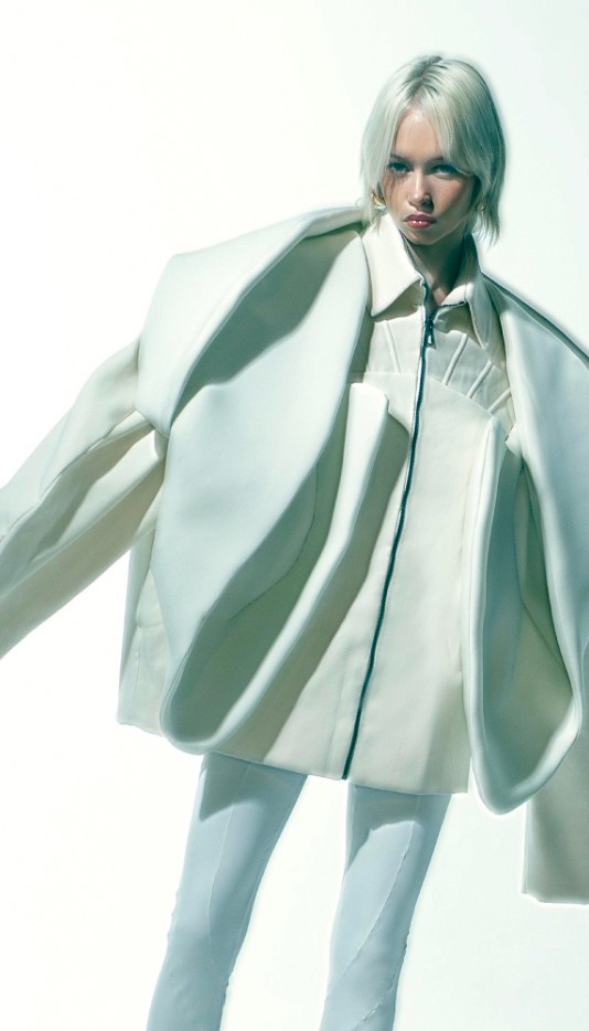 Mi ispiro soprattutto alla moda concettuale, all’arte contemporanea, all’architettura e al cinema. Mi sento particolarmente vicina a estetiche come quelle di Maison Margiela, Prada e Bottega Veneta, dove struttura e pensiero progettuale sono centrali. Allo stesso tempo, se mi viene richiesto di lavorare su qualcosa di distante dal mio stile, accetto volentieri: mi piace sperimentare e mettermi alla prova anche con linguaggi lontani dal mio.
