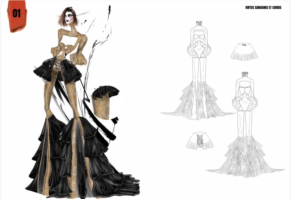 «Audace e diretto. Amo il contrasto: stampe animalier, pelle nera, cuciture rosse. Ogni abito deve raccontare chi lo indossa, mettendo in luce forza e fragilità.»